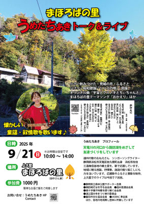 9月21日(日) 飯田市上久堅まほろばの里プライベートライブ(長野県飯田市)※田中さんのお友達対象