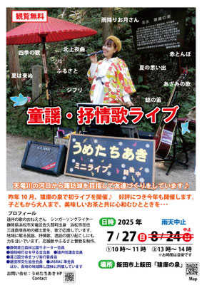 7月27日(日) 猿庫の泉・童謡・抒情歌ライブ(観覧無料)(長野県飯田市)