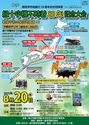 8月20日(水) 緑十字機不時着80年記念大会(入場無料)13:00~ プログラム№9「八月の約束」出演15:00頃(磐田市)