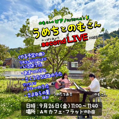 9月26日(金) うめちとのむさん Second LIVE(観覧無料)11:00~(周智郡森町)